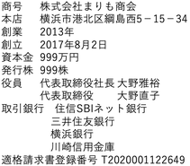 事業を法人化しても矛盾しない商会としました。まりもの販売は行っていません。